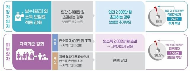 - 직장가입자의 배우자, 직계존속, 직계비속 및 그 배우자, 형제, 자매(배우자의 직계존속. 비속 포함) 및 부양 조건에 충족하는 자