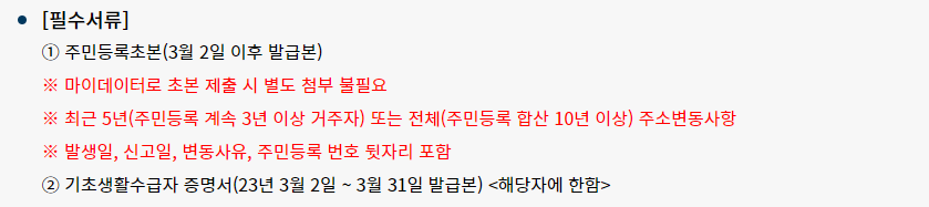➃ 기초생활수급자 증명서 첨부(2023년 3월 2일~3월 31일 발급본)