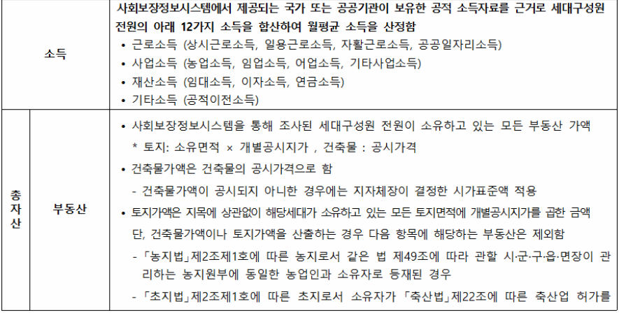 3) 소득. 자산 조사 : 신청자(무주택가구 구성원 전원 포함)의 소득과 자산 자료는 사회보장 정보시스템의 조사 결과에 의함