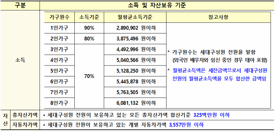 7. 국민임대아파트입주 조건 - 소득 및 자산 보유 기준