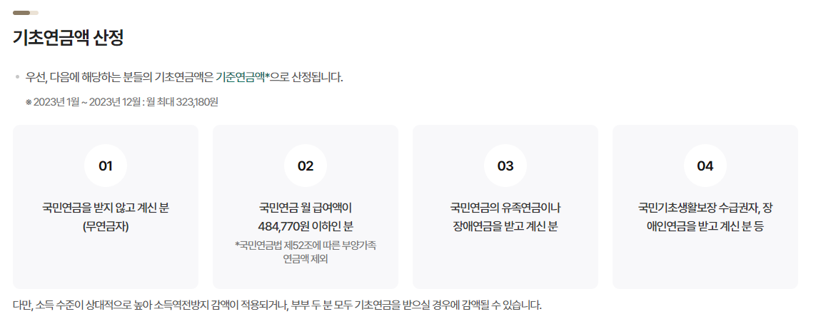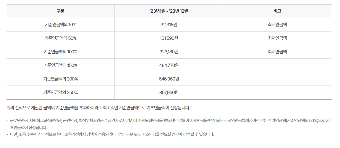 3. 수급 자격에 해당할 경우 연금액: 2023년 1월 ~ 2023년 12월 월 최대 323,180원