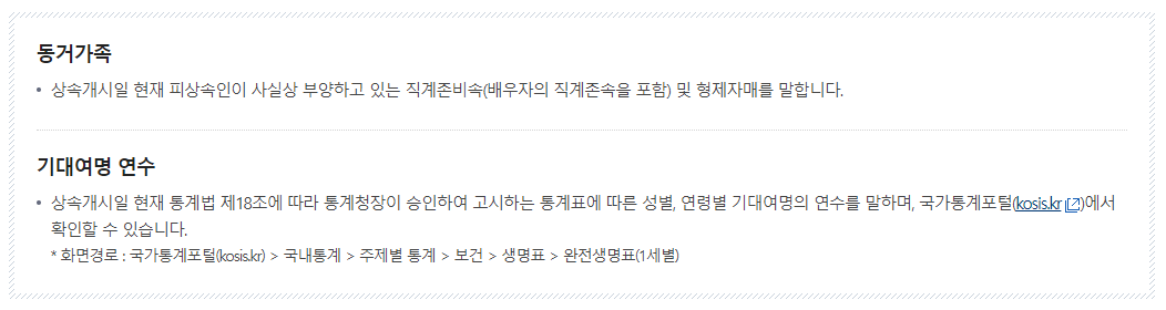 - 거주자 사망으로 인하여 상속이 개시되는 경우 자녀 및 동거가족