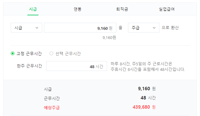- 주급 : 9,160원 X 48시간 = 461원