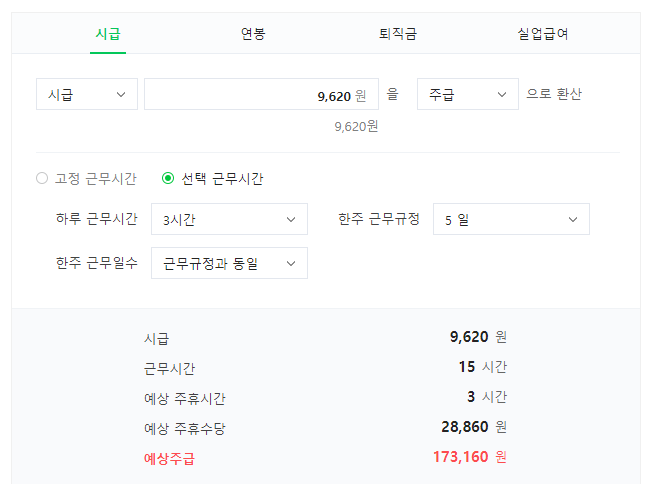 - 수당 : 시급 9,620원 x 8시간 = 76.960원