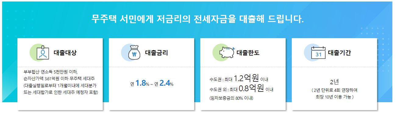 3) 소득 : 대출 신청인과 배우자의 합산 총소득이 5,000만 원 이하, 합산 순자산 가액은 3억 2,500만 원 이하