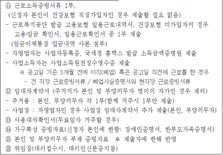 - 해당자 추가 제출서류